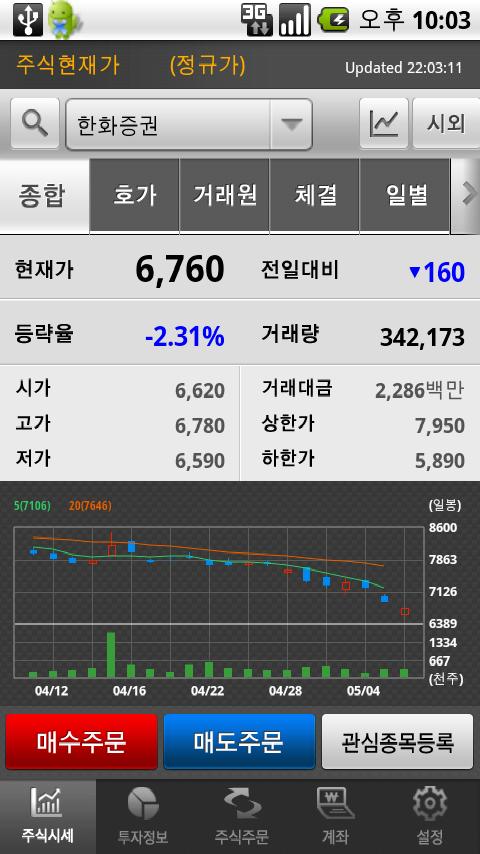 한화증권의 안드로이드폰용 주식거래 서비스를 제공하는 프로그램입니다.