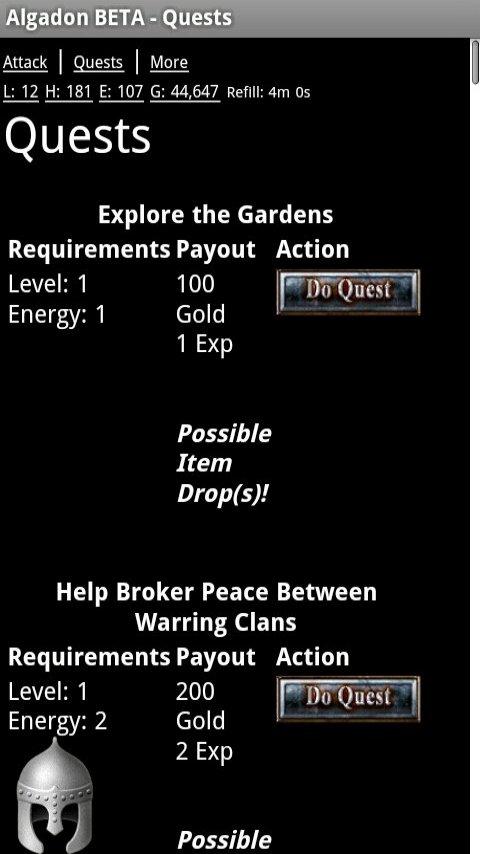 Free medieval/fantasy role playing game (MMORPG) that allows players to perform quests, battle monsters/beasts, fight players, place bounties, and much more. Players can buy weapons, armor, spells, food, etc. to help in leveling, training to become stronger, and questing. Fully mobile friendly; free registration required.