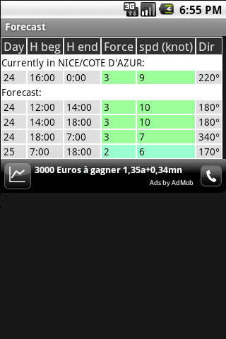 Provides a forecast of wind force and direction for a selected city (feature ad supported).