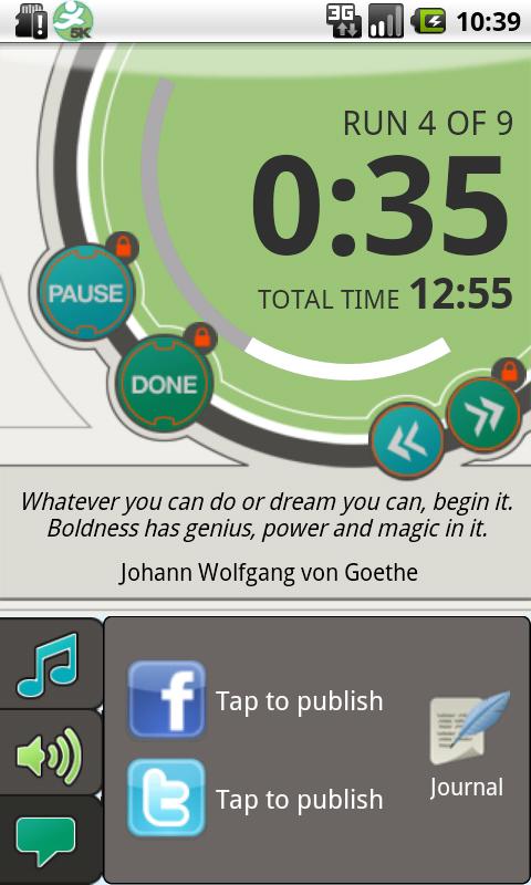 This app gives you audio prompts every time you need to change from running to walking according to the Couch to 5K plan. You can listen to your music and enjoy your workout without constantly looking at your stopwatch.