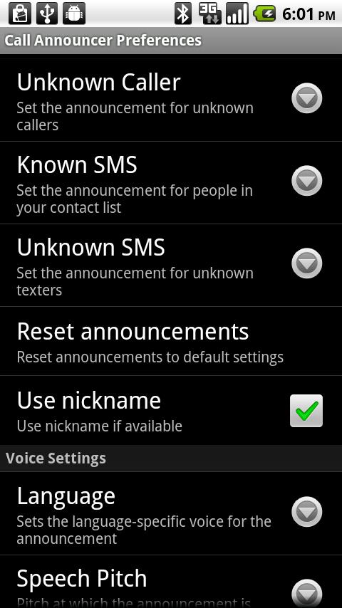 Call Announcer provides an audible caller id for your Android phone. Utilizing your contact list and Google’s Text to Speech (TTS) capabilities, all incoming calls are announced alone or over your current ring tone. Incoming SMS messages can also be announced and Read. All announcements are fully customizable.