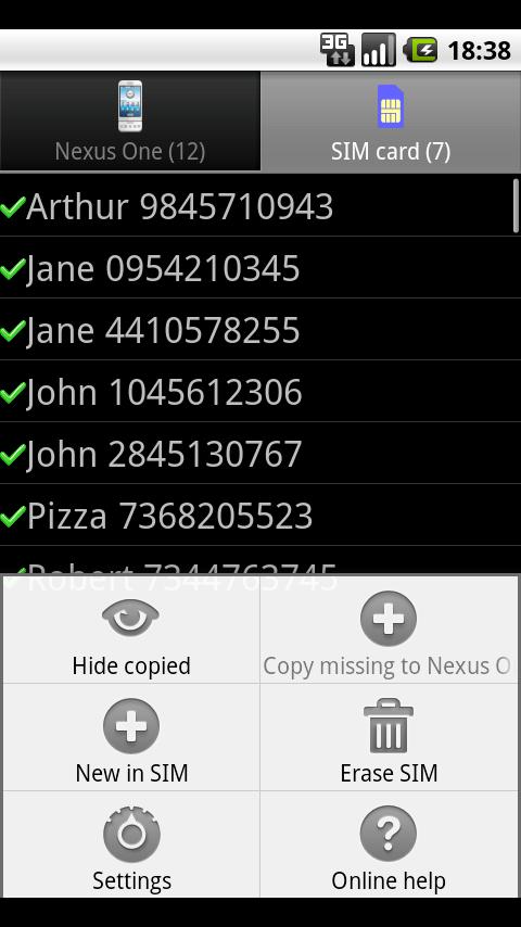 Erase SIM and Copy the missing numbers to and from the SIM.