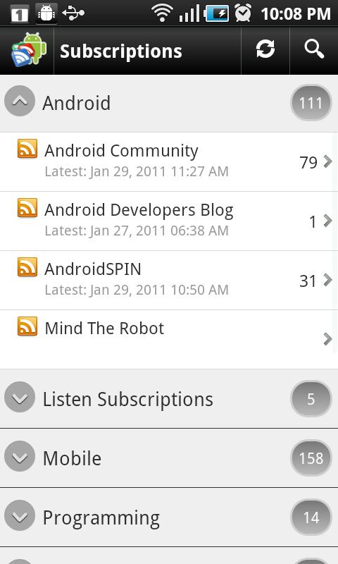 A simple, fast and powerful Google Reader client for Android; You can now access your reading list and manage your subscriptions (rss,atom or news) with ease from a native application, which is always in sync with Google Reader.