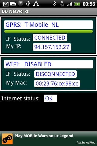 DD Networks is a tool to view in realtime the ip info and detailed status of your Wifi & Mobile network connections.