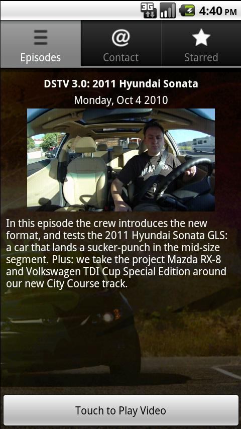 This is the most convenient and reliable way to access Driving Sports TV on your Android phone. If you’re connected by Wi-Fi, 3G, or EDGE, youre connected to the latest episode. Instant access, just touch and play!