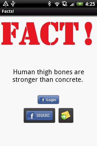 Random facts you can send to your friends via messages or post to Facebook! Ranging from the awesome, to the weird, to just plain out there, these facts are sure to keep you entertained!