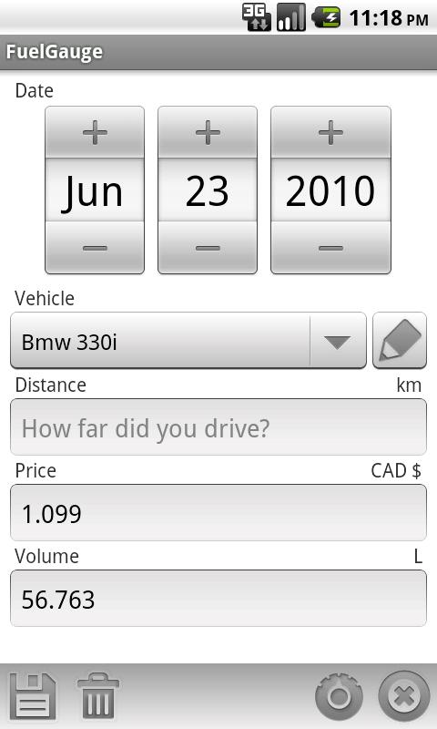 Fillups are grouped by vehicle; average fuel consumption is shown on a per vehicle basis as well.