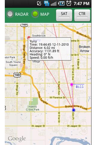 GPSRacon subscriber can track family members or friends in real time. Shows location, time, direction, speed, and status message. In case of emergency, it can send a SMS message to everyone you are sharing location with by clicking Help Me button.