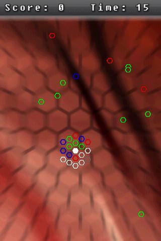 then you have to collect green or red hexas. Blue hexas give more speed to your movement.