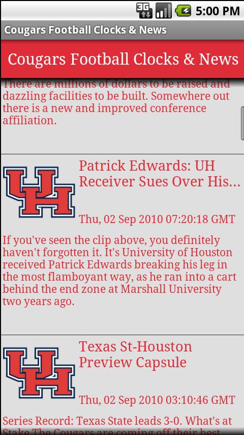 Do you love Houston Cougars Football? Try our new Cougars Command Center widget with Houston Cougars Football news feed & custom clock. Show Cougar pride with 2 custom Houston Cougars clock widgets included.(3 sizes)