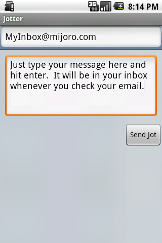 Get that thought out of your head and into your inbox. Jotter lets you jot down quick notes to your email inbox, to be reminded next time you check email. It loads quickly so you can get on with your life.