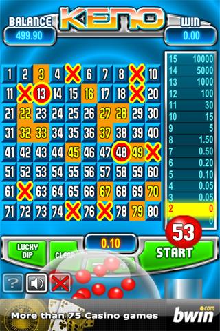 Keno is bright colourful and fun, based on an online lottery style balls and numbers game.