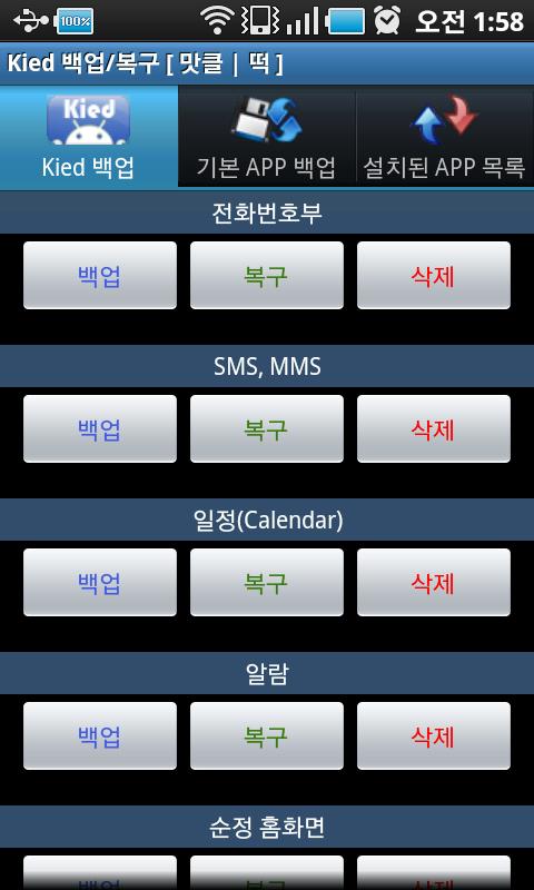 - App Name: Kied 백업/복구 [ 맛클 | 떡 ]