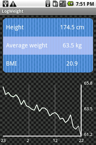 Log Weight is a simple application that helps you to record daily weights more easy.