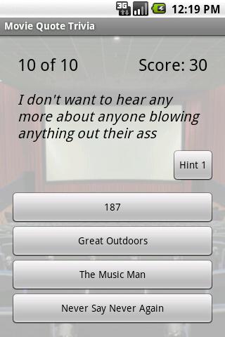 Test your movie knowledge with Movie Quote Trivia. Play by yourself or with your friends. With over 20,000 quotes, this game stays fresh forever.