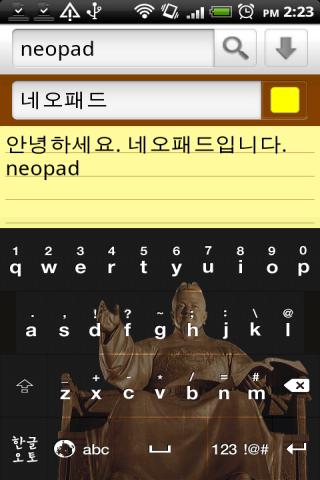 Neopad천지인_Trial의 기능중 멀티터치를 제거한 버전입니다. 안드로이드 1.6버전용 입니다. 안드로원, X10등