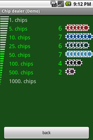Poker Chips Dealer App optimally distributes the chips from your poker case to the players. In this version of the app are the inputs (case and game) stored permanently and the distribution of the stack can be adjusted flexibly and easily.