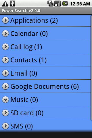 Powerful Search provides deep searching for contact info such as organization title & company, Calendar, Apps, Dropbox, Google Docs, Email & SD card including Docx files. Results viewed from Live Folder on Home Screen. Exchange contact & calendar support.
