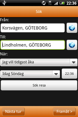 När man söker resvägar måste man använda de hållplatser som kommer upp när man börjar skriva namnet på hållplatsen.