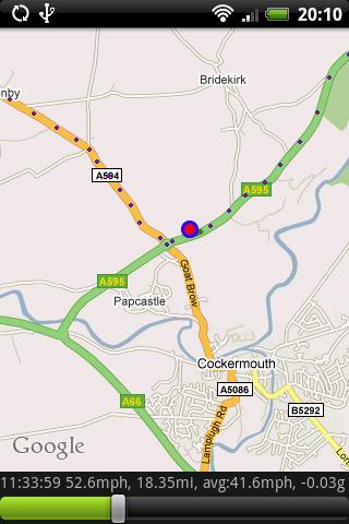 Ride Logger uses GPS to record time, speed, average speed, distance and acceleration data during a motorbike ride. Rides can be replayed on a map on the phone, or a Google Earth (KML) file can be generated. The file also shows points of max speed, acceleration and deceleration.