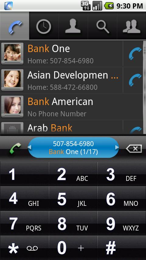 - Search Contacts using T9-like mechanism. Fast searching speed and tested over 5000 numbers ,results can be shown within 1 second.