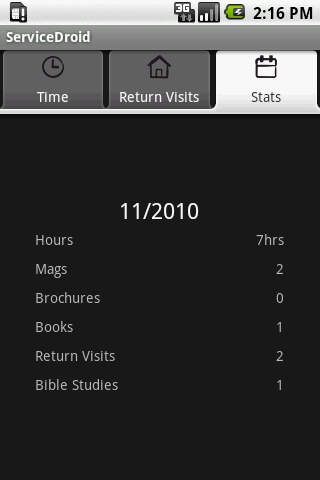 A field service assistant for Jehovah's Witnesses. Keep track of your service time, return visits, and placements.