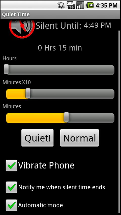 Never forget to unsilence your phone. Have your phone turn on the ringer back after a time you specify quickly using sliders. Optionally set your phone to vibrate and/or a quick vibration to alert you when your phones volume is back on. EXCLUDE FROM TASK KILLERS.