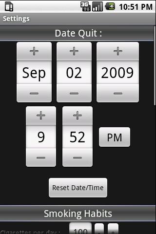 Smoker Statistics lets you track the amount of time since youve quit, money saved, life saved, and total cigarettes you havent smoked. Notifications tell your status, and you can even twitter your results.