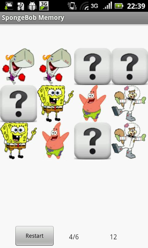 Spongebob memory game. Turn over matching pairs to finish the game as quickly as possible.