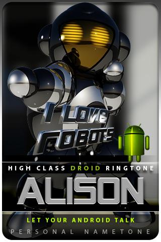 Posted onAugust 10, 2011AppsALISON nametone droid please type your name the word nametone in the market search, to find your personal DROID nametone.example: ALISON nametone Nametones Berlin presents ALISONOur Droid Nametone…Read More