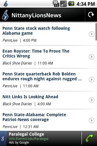 Penn State Nittany Lions RSS news aggregator. Features:~ Headlines from multiple news sources~ Popular blog feeds~ Background updates and notifications~ Football, Basketball, and Baseball news~…