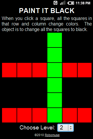 Posted onJuly 6, 2011GamesPaint It Black Each time you click a block, all the blocks in that row and column change colors. The object of this challenging game is to turn…Read More
