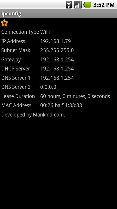 ipconfig is an application that displays current TCP/IP network configuration values. Upgrade 1.1: Click menu to change WiFi and IP settings. For a WiFi connection:*…