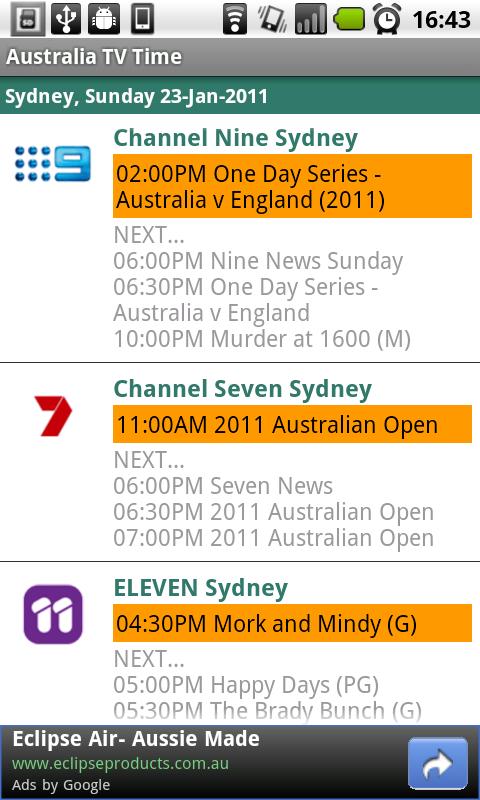Posted onFebruary 26, 2011AppsAustralia TV Time -This is a TV guide app for Australia FreeView TV channels, provide 5 days list. -Popular channels: ABC1,ABC2,ABC3,ABC News 24,SBS ONE,SBS HD,SBS TWO,Seven,7TWO,7mate,Nine,GEM,GO!,One HD,TEN,One Digital,TVS,Prime…Read More