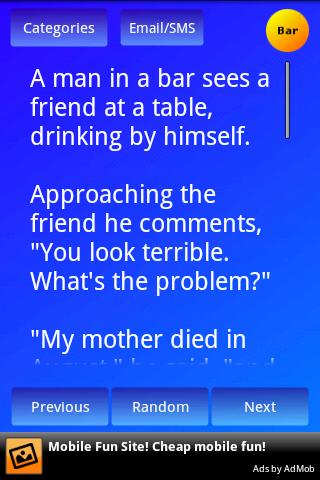 v1.3 Improved support for XVGA/WVGA screens. Ahaa Jokes contains over 600 jokes in 14 categories(Blonde, Bar, crazy, fishing, marriage, medical, military, school, sports, chuck norris…