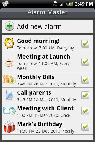 Powerful alarm program for variety of purposes from daily alarm-clock to bi-weekly reminders and monthly bills. Features: Flexible schedule/sound/playback optionsHome widgetCustom iconsEarly dismissDismiss and snooze…