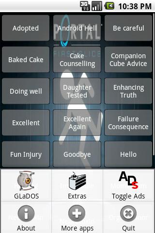 Posted onJune 22, 2011AppsPortal Soundboard GLaDOS Phrases by GLaDOS and the turret. Also includes the song Still Alive and the cake recipe. * Use menu to change characters* Long press to…Read More