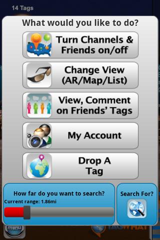 Tagwhat location browser with create-and-share mobile augmented reality. With on-line map and mobile AR, everyone enjoys their own personalized global canvas. Set up your account, connect to and invite friends from Facebook and Twitter. Now includes Foursquare.