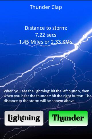 When you see the lightning: hit the Lightning button, then when you hear the thunder: hit the Thunder button. The distance to the storm will be shown.