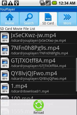 YouPlayer also can list your video file in SDCard(Like mp4,3gp,etc)